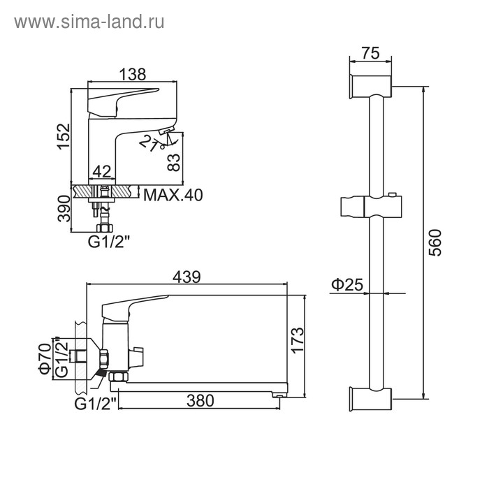 Набор смесителей Accoona A2769, для раковины, для ванны, стойка для душа, латунь