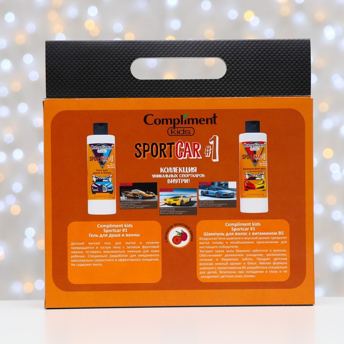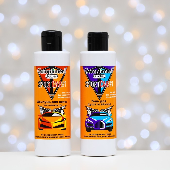 Набор Compliment Kids Sportcar #1: гель для душа и ванны, 200 мл + шампунь для волос, 200 мл + карточки со спорткарами