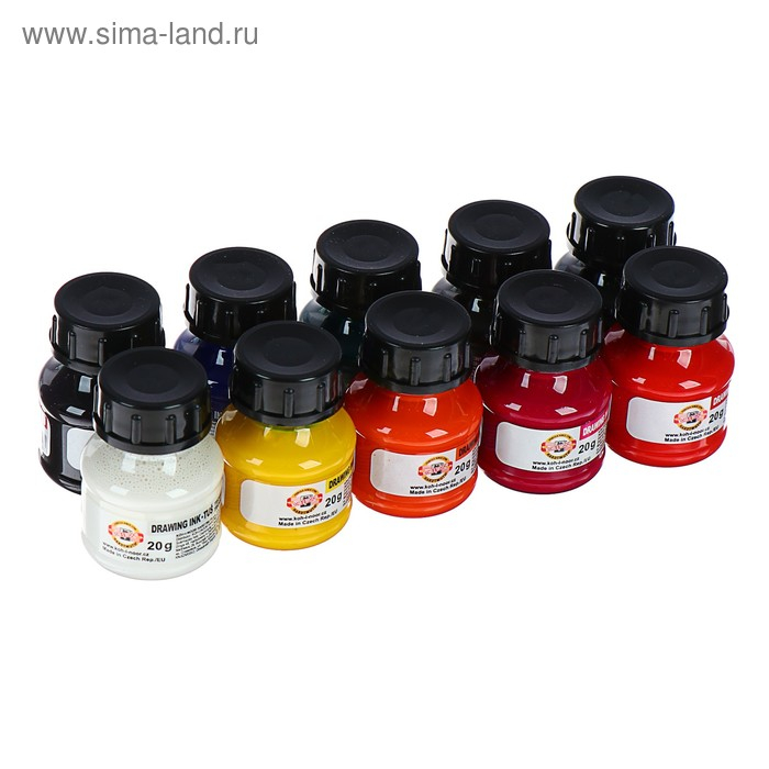 Набор цветной туши Koh-I-Noor, 10 цветов в тубах по 20 мл, картонная упаковка