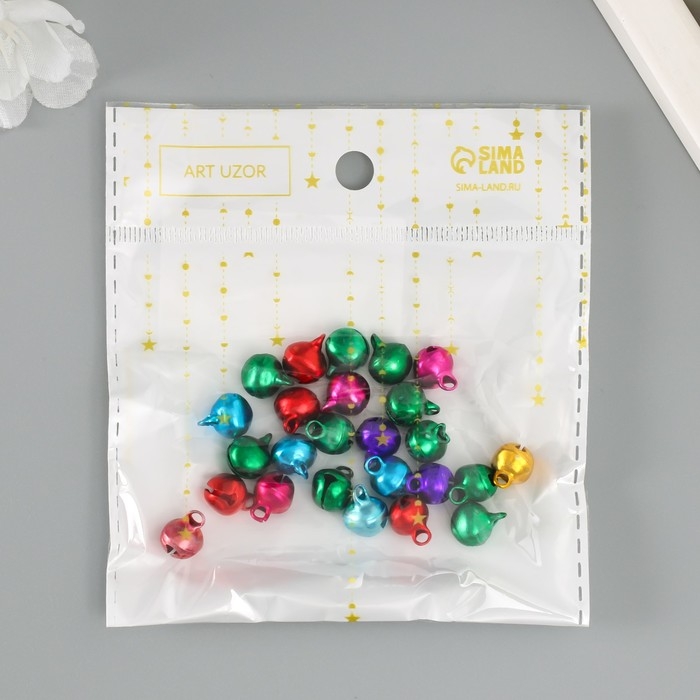 Набор декора для творчества металл "Колокольчики цветные" (набор 25 шт), d-1 см, 12х10 см