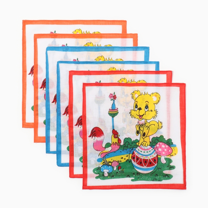 Набор детских носовых платков Etteggy (6шт) 25х25см печать полотн. 66г/м, хл100%