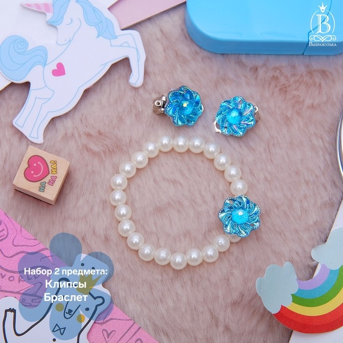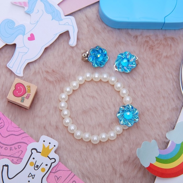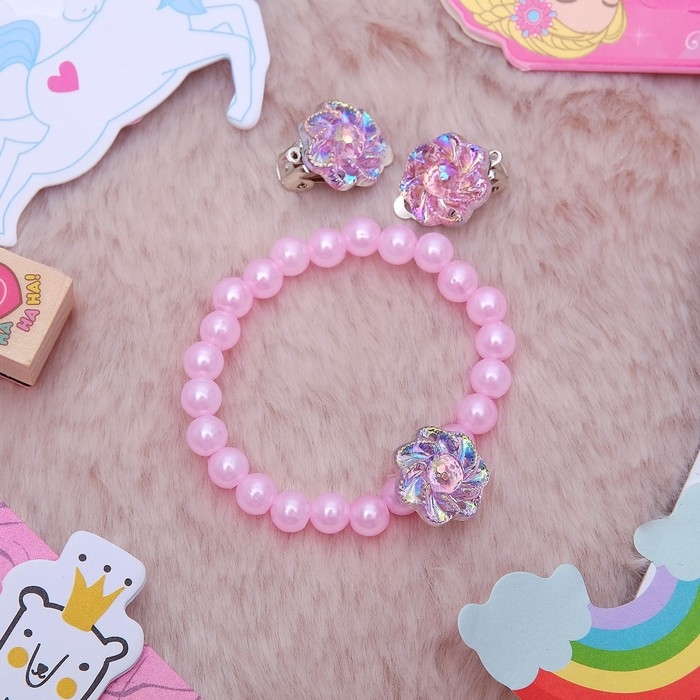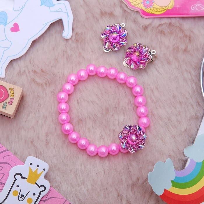 Набор детский 2 предмета: браслет, клипсы, цветок перламутровый, цвета МИКС