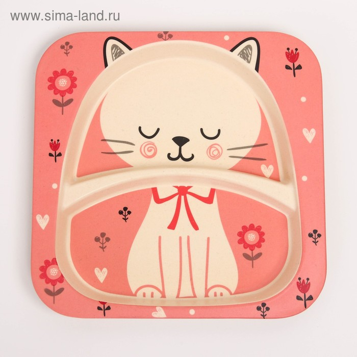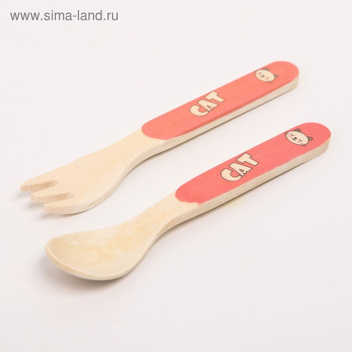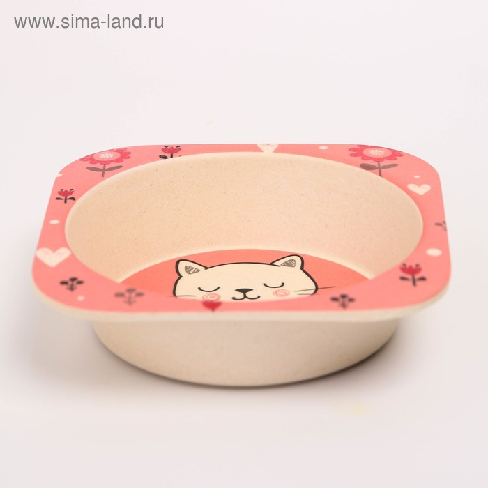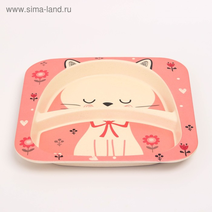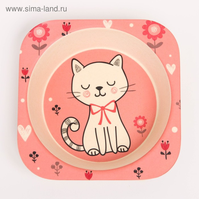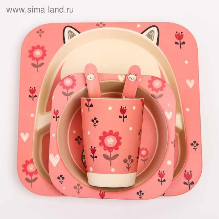 Набор детской бамбуковой посуды «Кошечка», тарелка, миска, стакан, приборы, 5 предметов