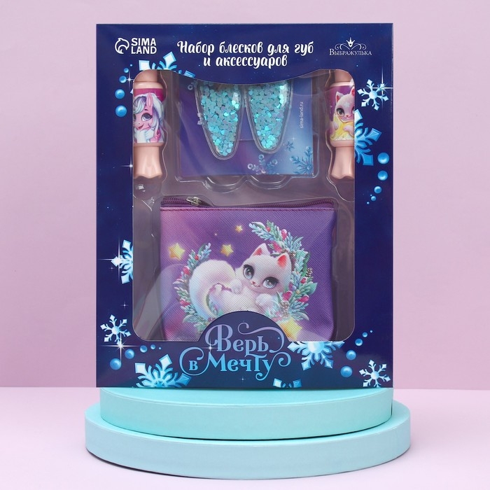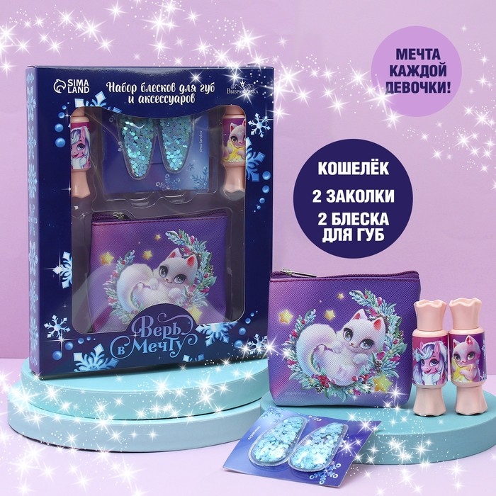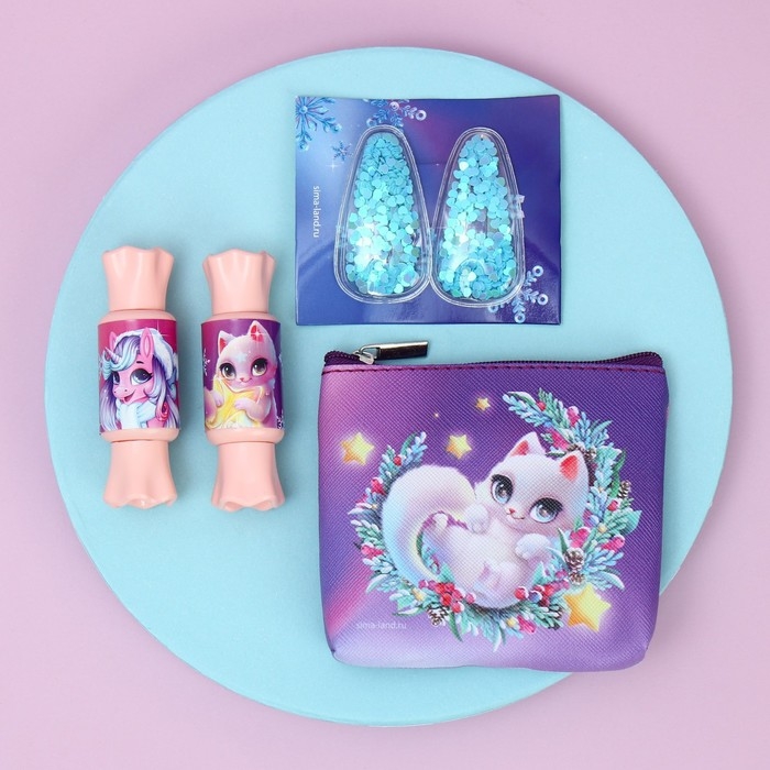 Набор детской косметики для девочки «Новый год! Верь в мечту», блеск для губ, косметичка, заколки