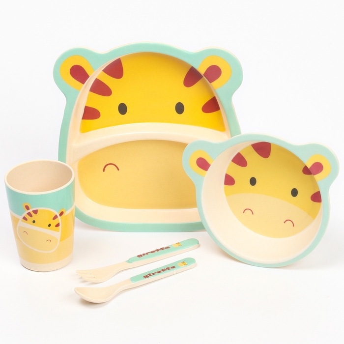 Набор детской посуды из бамбука «Жирафик», 5 предметов: тарелка, миска, стакан, столовые приборы