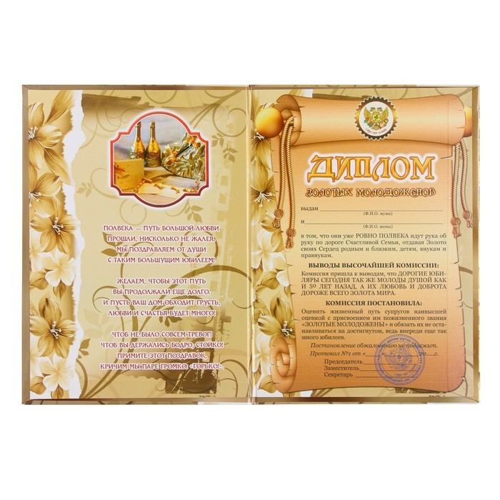 Набор диплом с медалями "Годовщина свадьбы 50 лет"