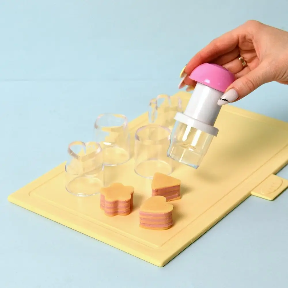 Готовьте оригинальные закуски на шпажках с помощью набора для канапе «Супер». Набор состоит из 5-ти насадок круглой, квадратной, треугольной и фигурной формы и пресса. Формочки идеально подходят для нарезки кусочков хлеба, овощей, фруктов, сыра, колбасы и других продуктов. Высота насадки 4,5 см, с ней удобно готовить закуски размером 4 см. Формы изготовлены из качественных материалов (полипропилен, полистирол, ABS), просты в использовании и не нуждаются в особом уходе. После применения вымойте набор в проточной воде с моющими средствами.