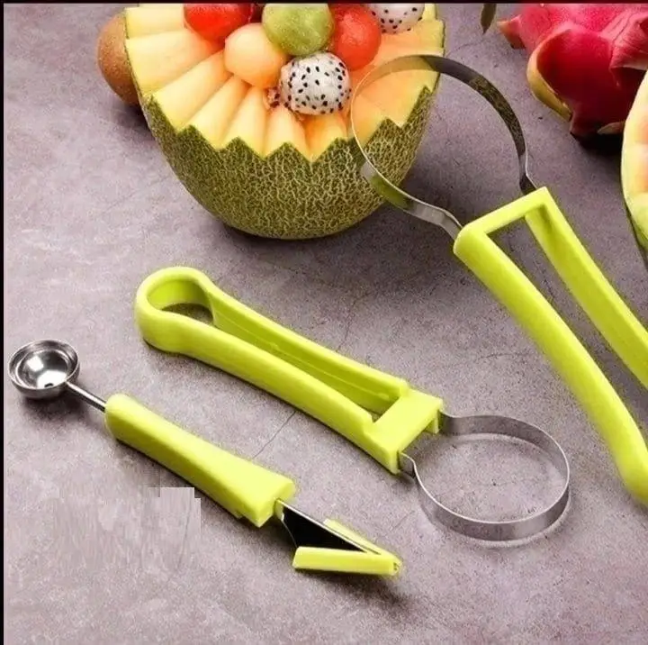 Набор для карвинга 3в1 - идеальное решение для ценителей кулинарного искусства. Набор для карвинга, нож для фруктов выполнен из нержавеющей стали, которая невероятно прочна и остра, что без труда разрежет толстую кожуру ананаса, дыни или арбуза. Набор состоит из ножа с удлиненным лезвием, ножа-ложечки для шариков и прибора для удаления семян из овощей и фруктов. Нож с удлиненным лезвием с насечками, позволяет не только ровно и красиво нарезать с коркой, но и достать дольки мякоти ровными и привлекательными. Нож-ложечка позволяет вырезать шарики из мякоти разного диаметра для получения сфер и полусфер.С помощью этого набора ножи складные можно приготовить оригинальные десерты, украсить мороженое, коктейли, выпечку. Все предметы имеют отверстие в ручке для подвешивания на крючок. Карбовочный нож для фигурной резки с V-образным зубчатым лезвием для формирования выемок и фигур. Нож-ложка позволит легко и быстро вырезать шарики для композиции. Готовьте с удовольствием!