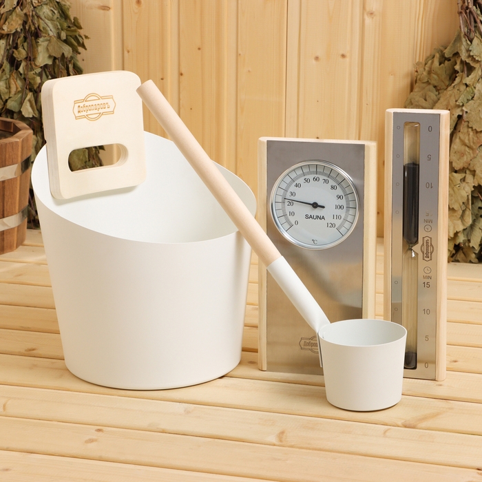 Песочные часы, Термометр, Черпак, Шайка