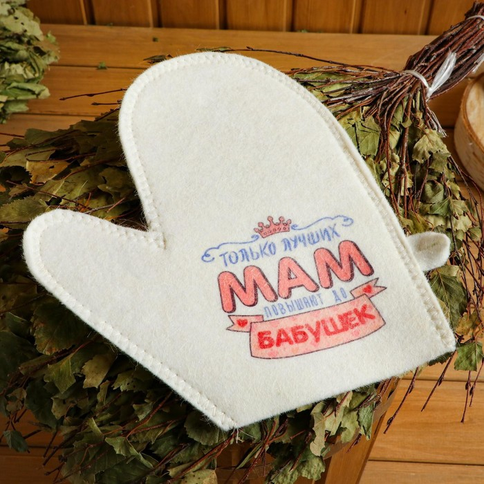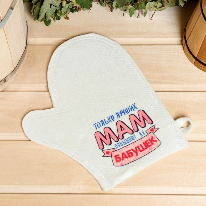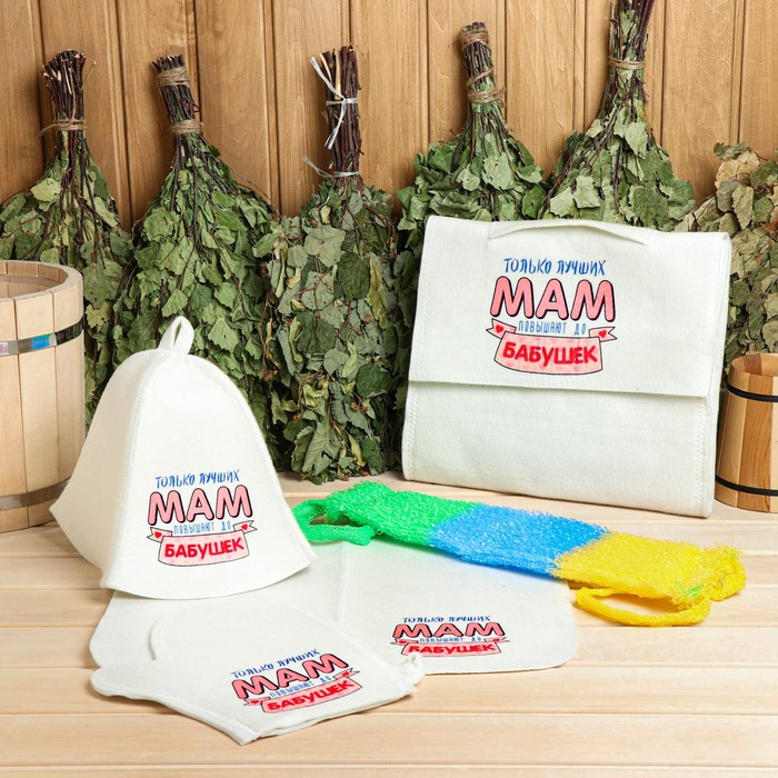 Набор для бани и сауны 5в1(сумка,шапка,варежка,коврик,мочалка),"Только лучших мам",белый