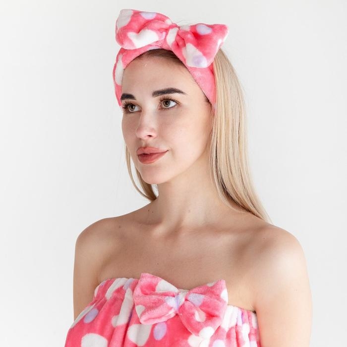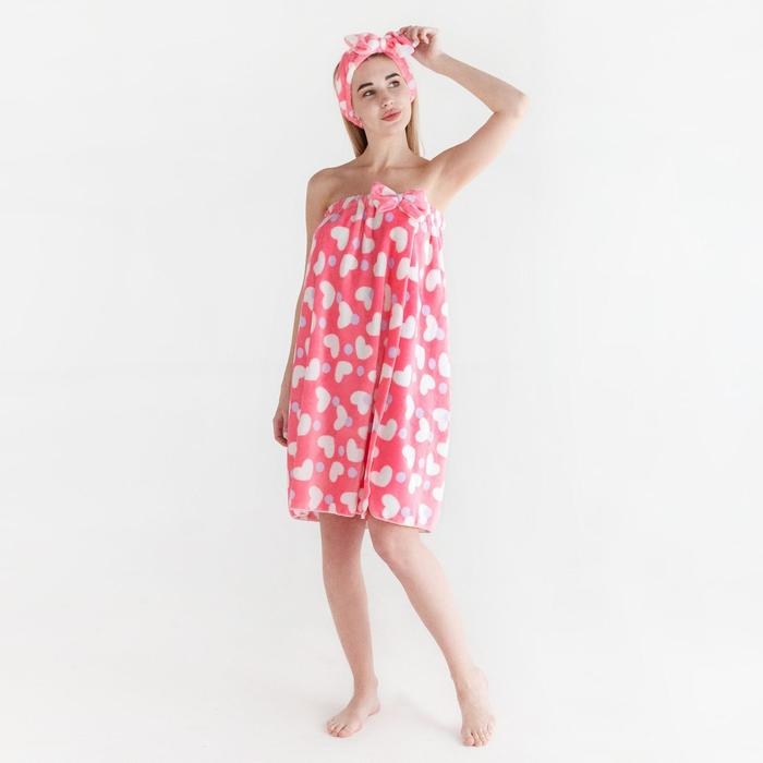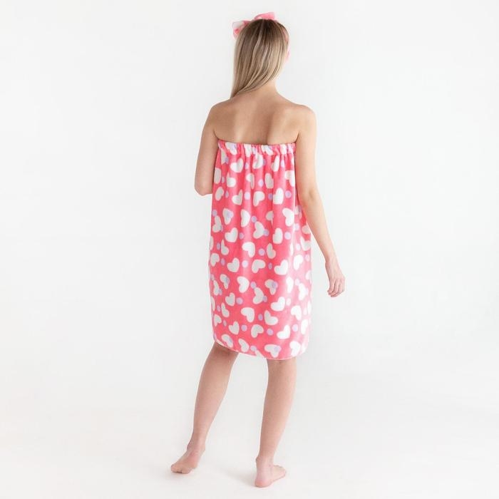 Набор для бани и ванной Этель "Сердечки"полотенце-парео 75*120 см+повязка
