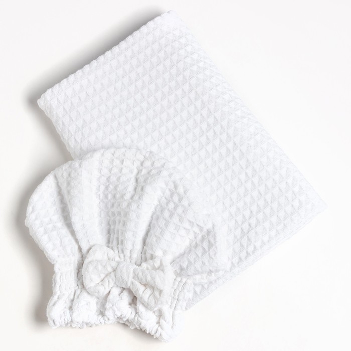 Набор для бани и ванной Этель «Вафля» полотенце 70*140 см+чалма 21*25 см, цв.белый