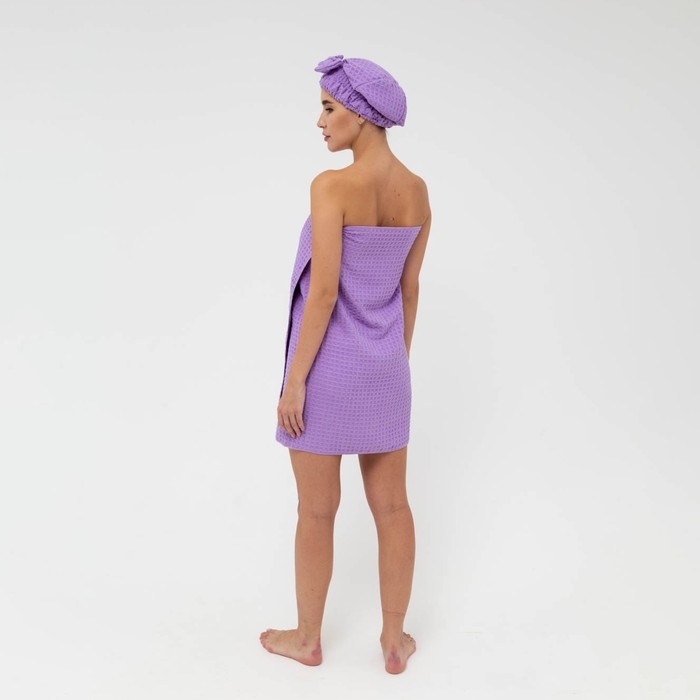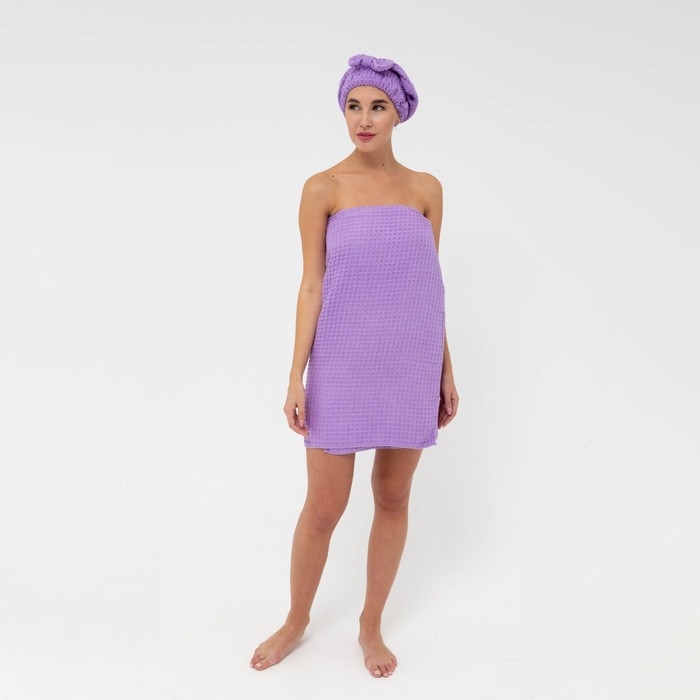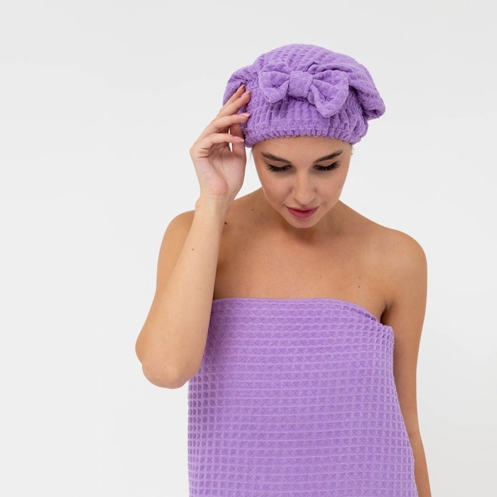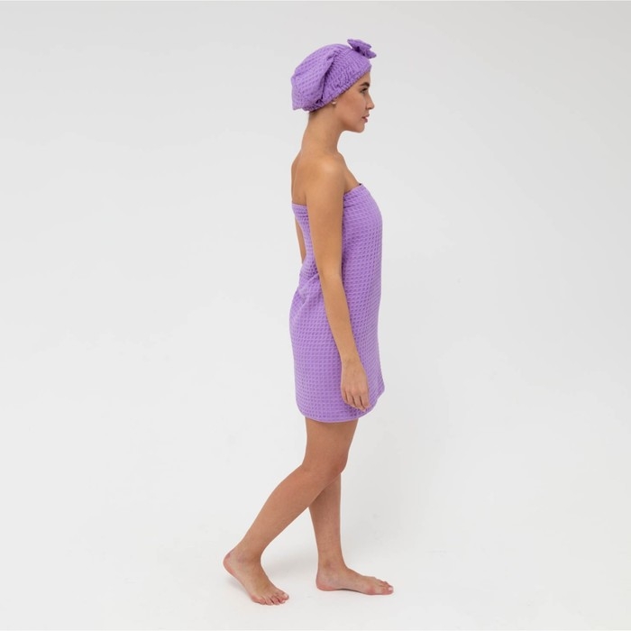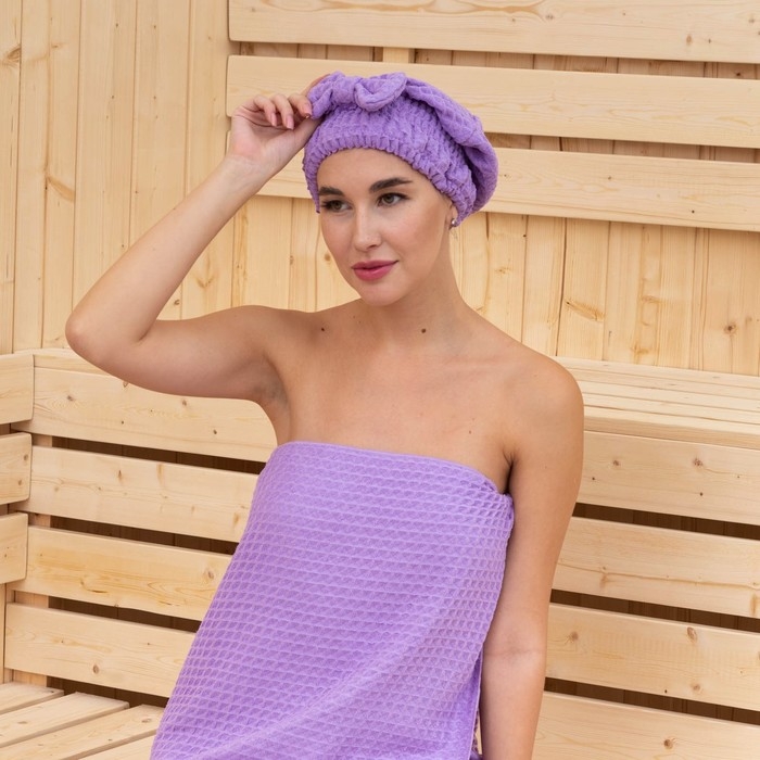 Набор для бани и ванной Этель «Вафля» полотенце 70*140 см+чалма 21*25 см, цв.фиолетовый