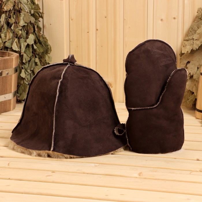 Набор для бани из овчины, шапка, рукавица "Премиум"