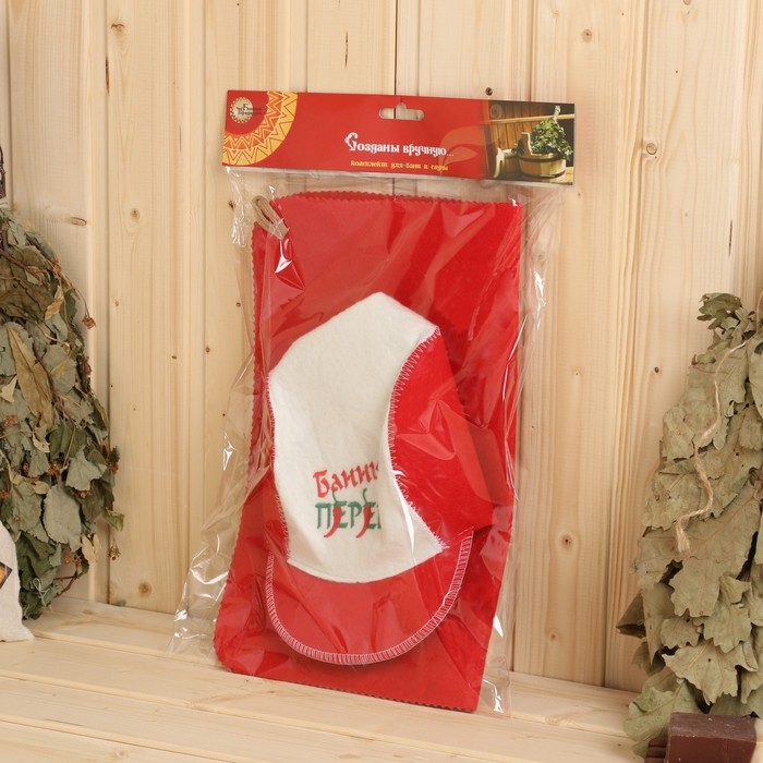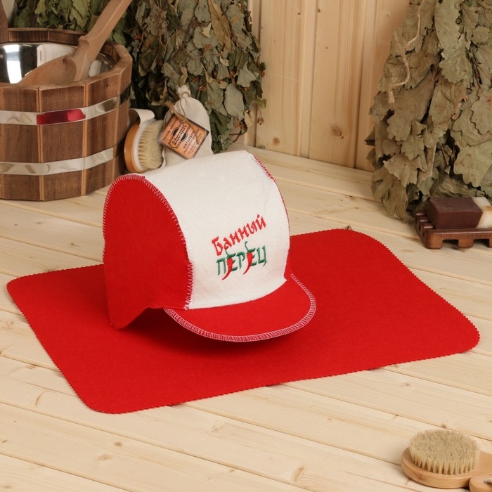 Набор для бани: шапка и коврик "Банный перец" красный