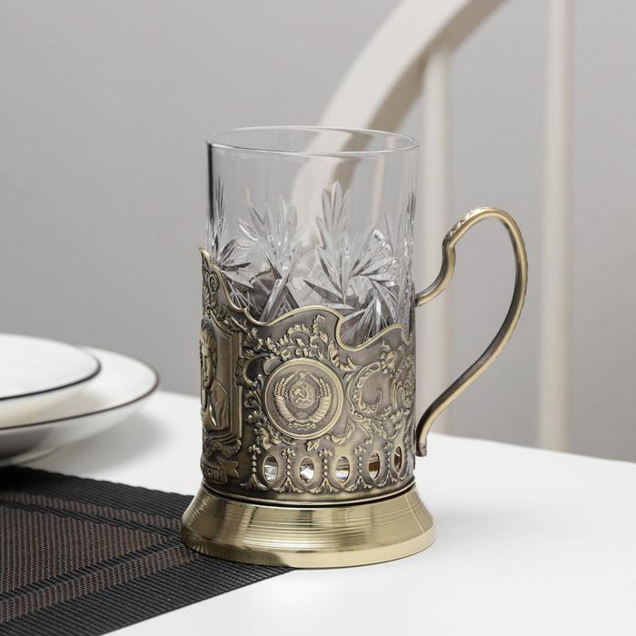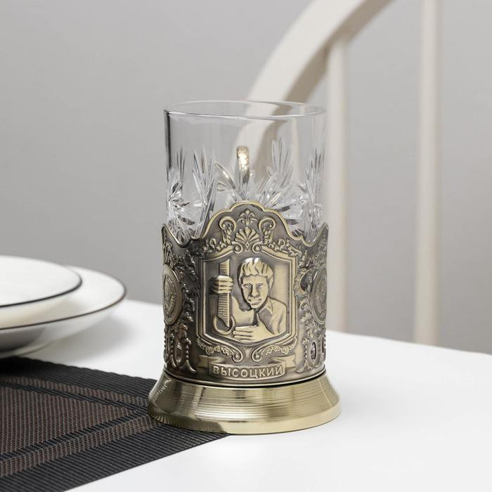 Набор для чая «Высоцкий», 2 предмета: подстаканник d=65 мм, стакан, латунь