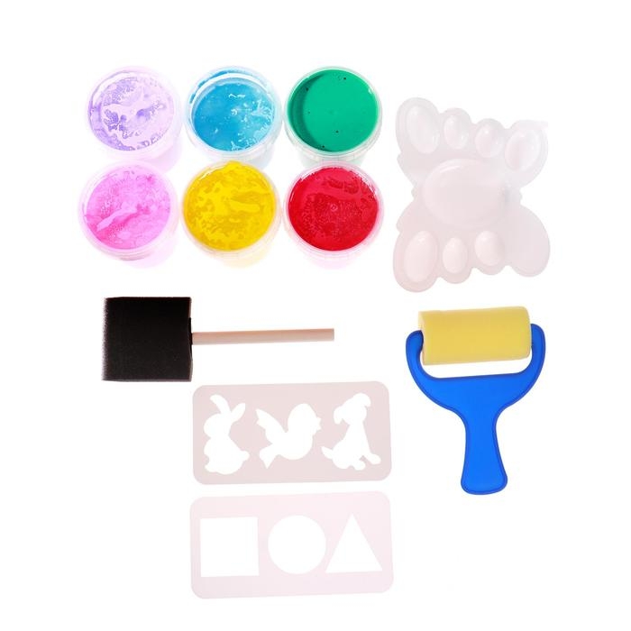 Краски пальчиковые, на водной основе, с губкой, 6 цветов