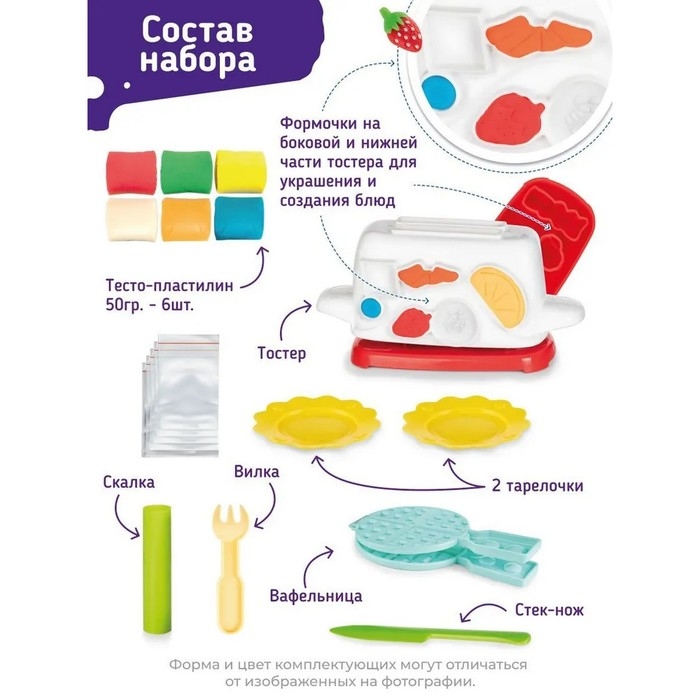 Лепить из пластилина — отличный способ развивать творческие способности детей. С набором «Тостер» ребёнок приготовит завтрак на любой вкус: тосты, вафли или яичницу. Завтрак можно дополнить сыром, грибами, фруктами, ягодами и многими другими вкусностями!
