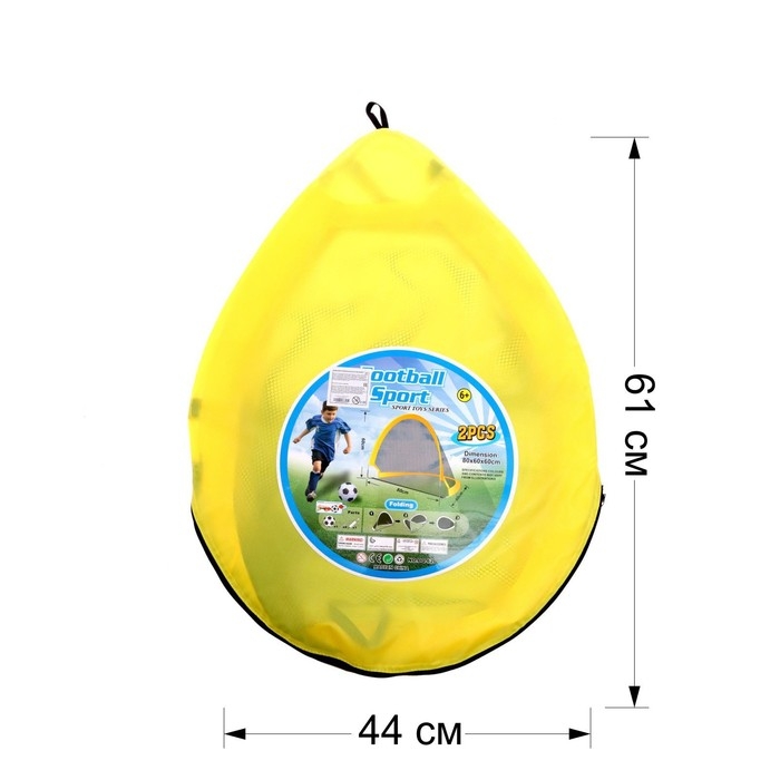 Набор хранится в сумке. Ворота изготовлены из пластика и сетки. Они легко собираются — игру можно начать в любом месте и в любой момент!