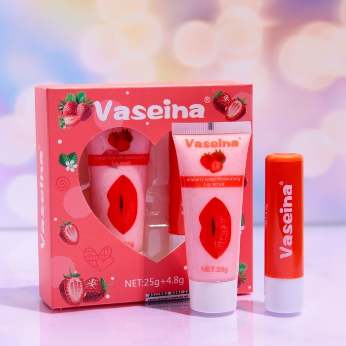 Набор для губ «Клубника» : бальзам и скраб