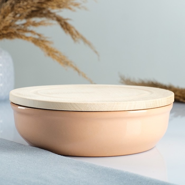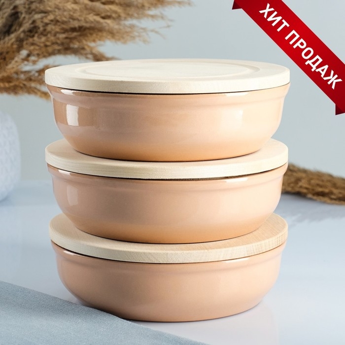 Набор для холодца "Вятский №3" (3 емкости / 1л. + 3 деревянные крышки), бежевый