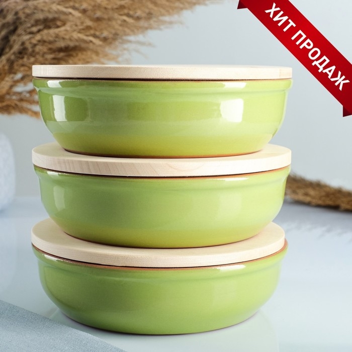Набор для холодца "Вятский №3" (3 емкости / 1л. + 3 деревянные крышки), салатовый