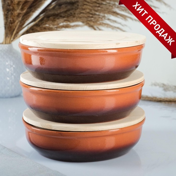 Набор для холодца "Вятский №3" (3 емкости / 1л. + 3 деревянные крышки), традиция