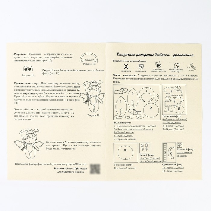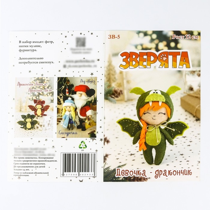 Набор для изготовления текстильной игрушки «Девочка-дракончик» рост — 15 см