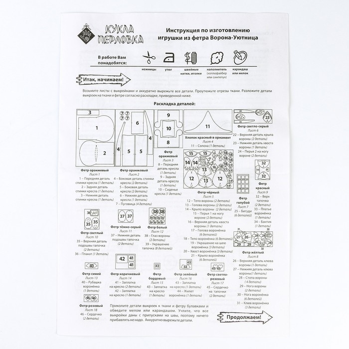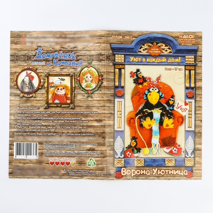 Набор для изготовления текстильной игрушки «Ворона-Уютница» высота — 17 см