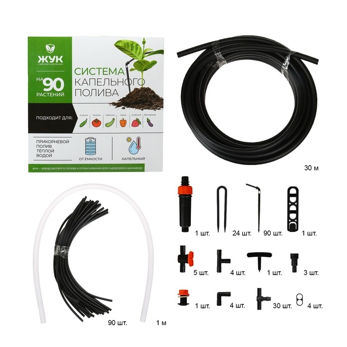 Набор для капельного полива от ёмкости, на 90 растений, «Жук»