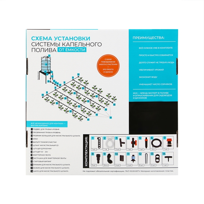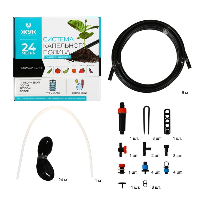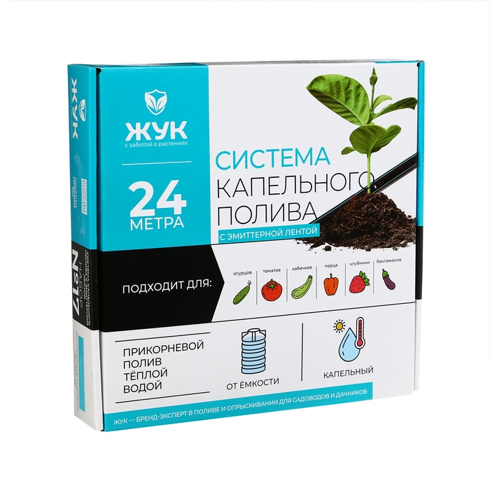 Набор для капельного полива от ёмкости, с эмиттерной лентой 24 м, «Жук»