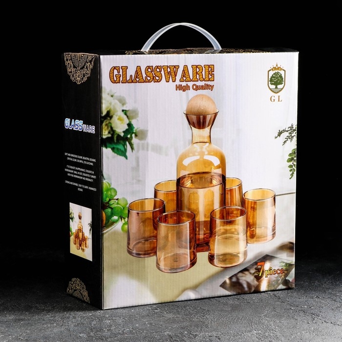 Набор для напитков из стекла «Эко», 7 предметов: графин 1 л, 10×24,5, 6 стаканов 250 мл, цвет золотой