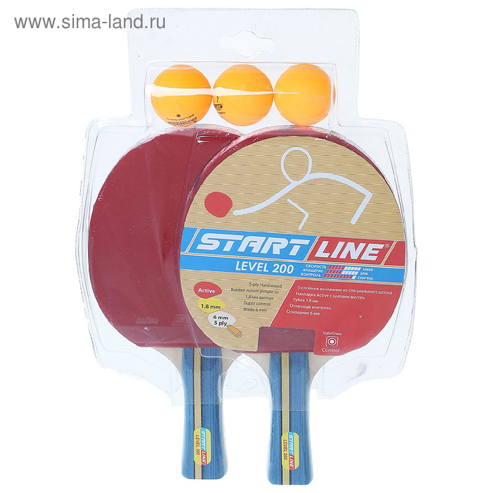 Набор для настольного тенниса, 2 ракетки Level 200, 3 мяча Club Select