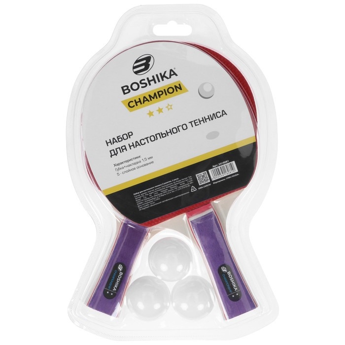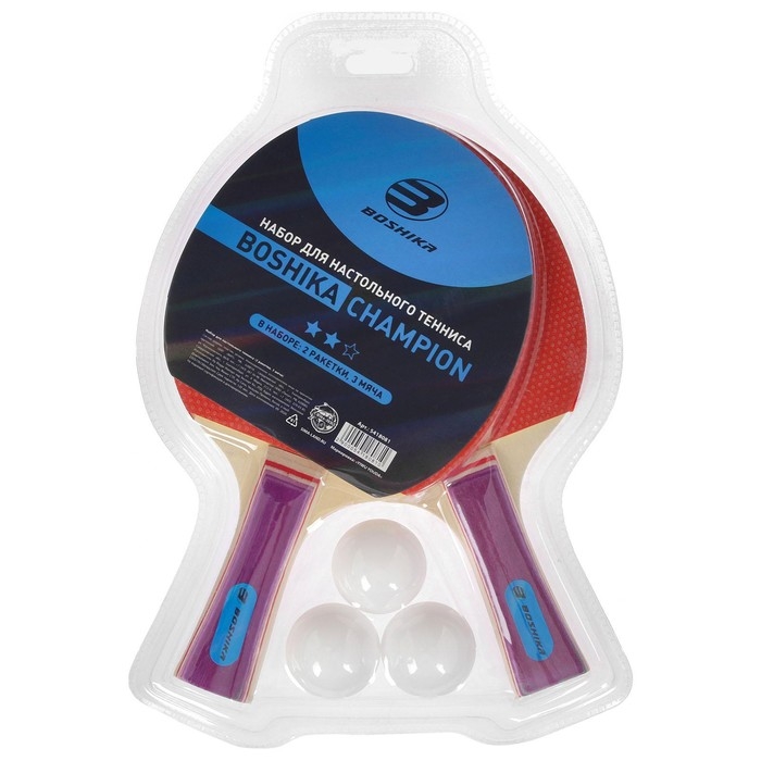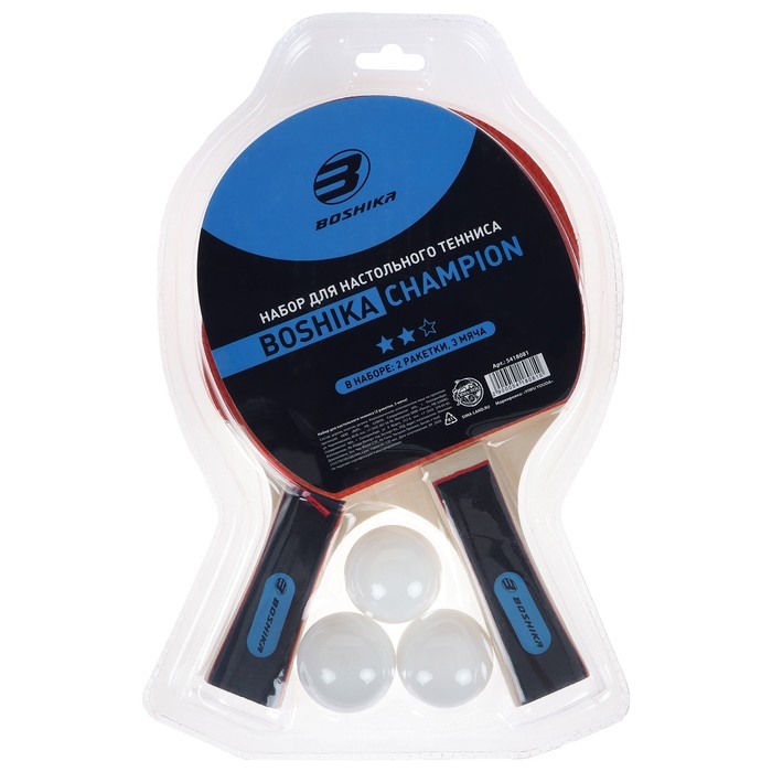 Набор для настольного тенниса BOSHIKA Championship: 2 ракетки, 3 мяча, 2 звезды