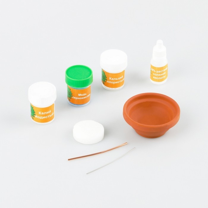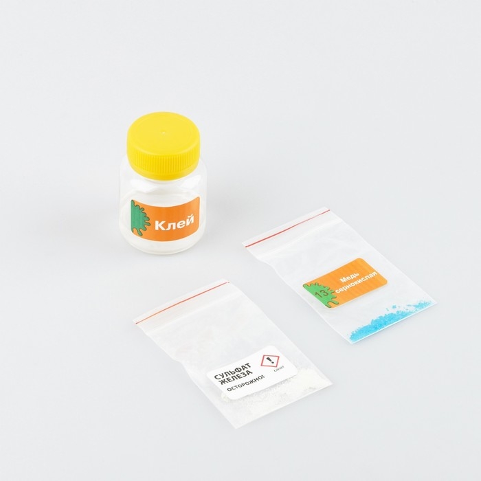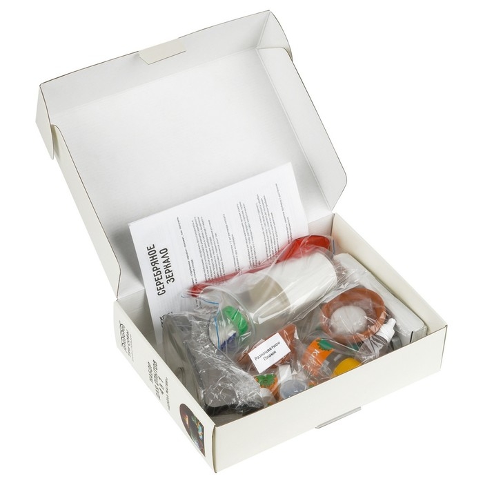 В наборе представлены 4 увлекательных опыта: светящиеся полимерные червяки, коллоидный сад, разноцветное пламя, серебряное зеркало.