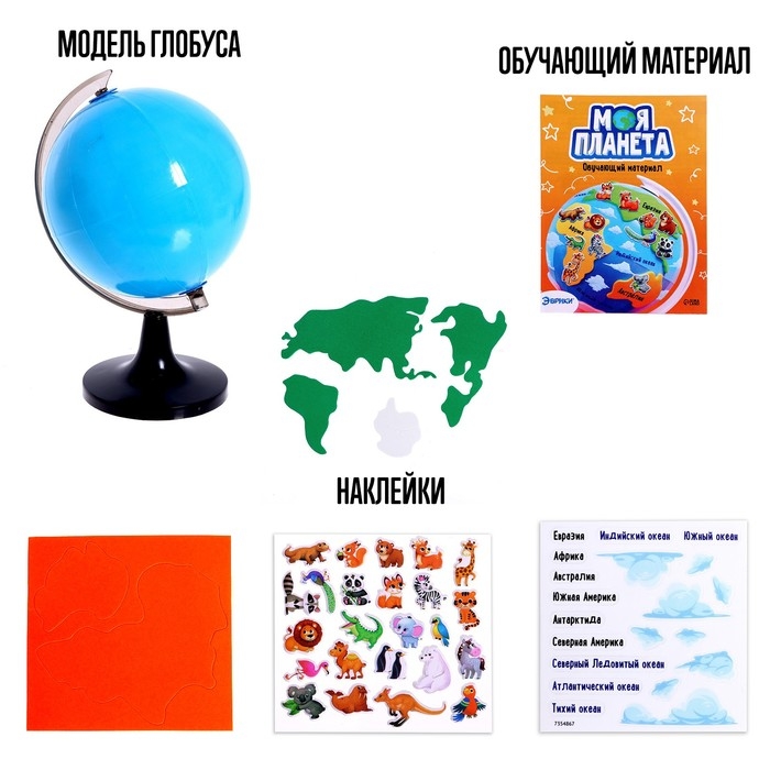 С обучающим набором малыш в игровой форме познакомится с материками, а также узнает, какие животные обитают на них.