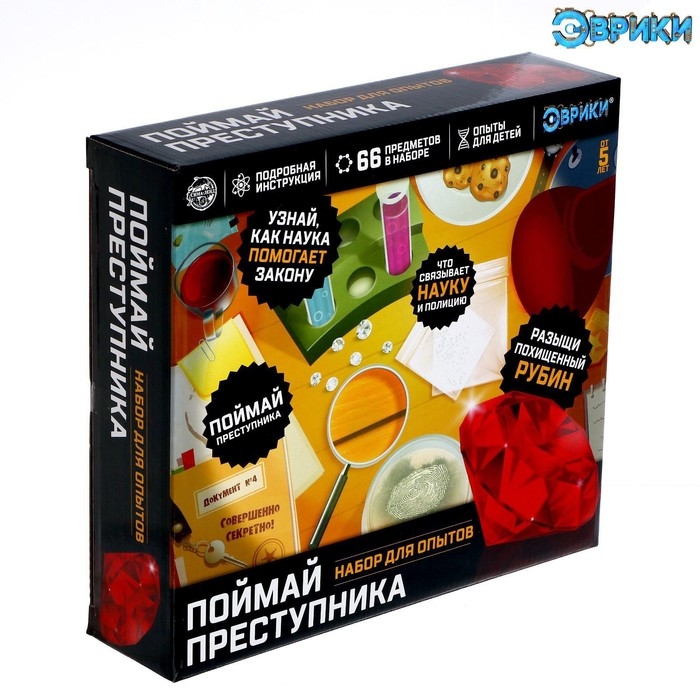 Время ловить преступников! С наборов для опытов «Эврики» ребёнок станет настоящим детективом и разыщет потерянный рубин.