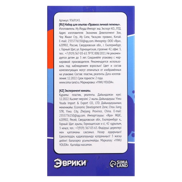 Набор для опытов «Правила личной гигиены»