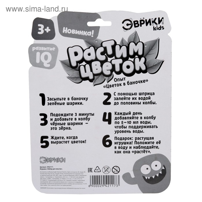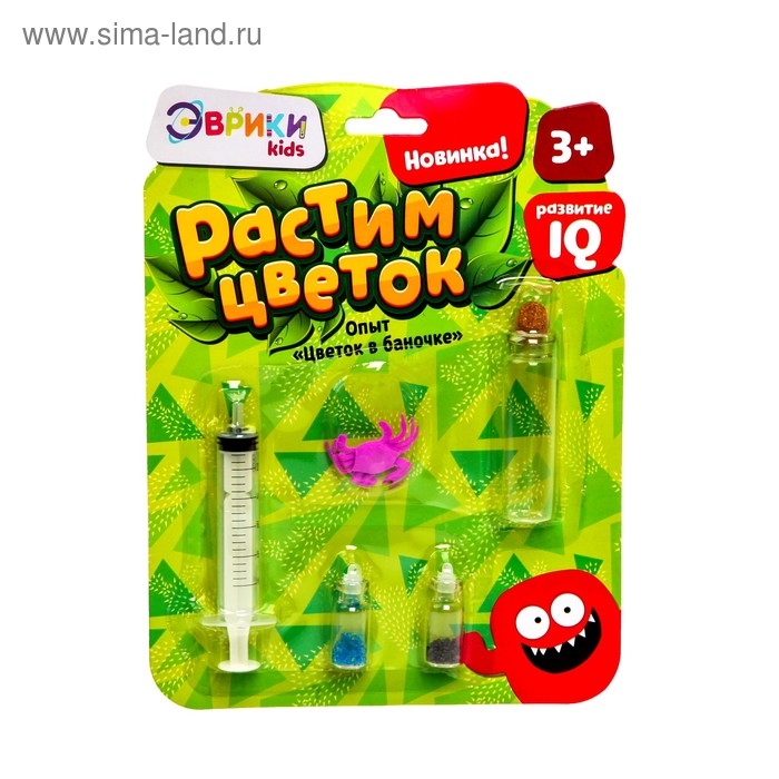 С набором торговой марки «Эврики» малыш проведёт свои первые опыты и вырастит цветок в баночке. Для этого ребёнку необходимо: