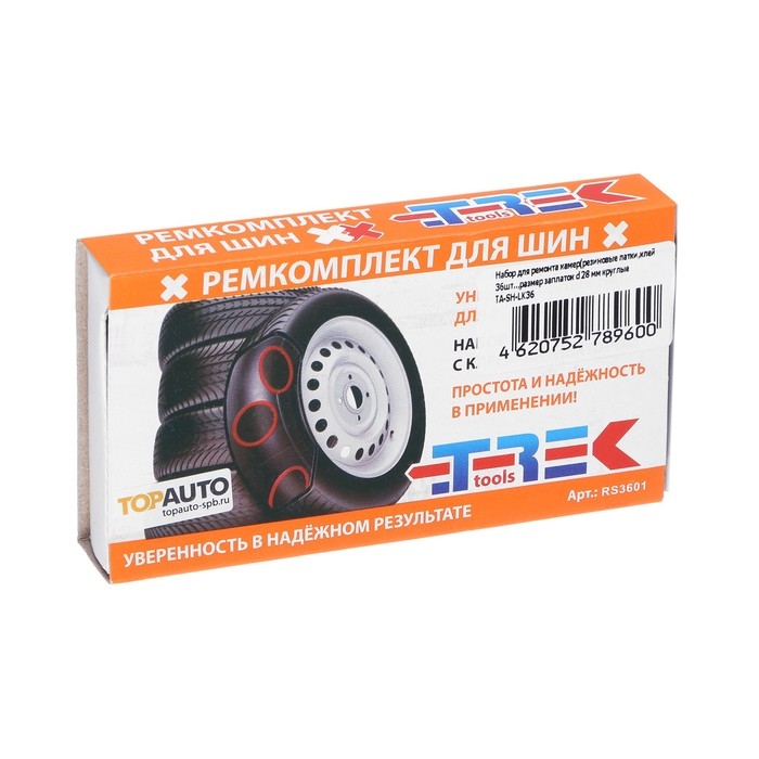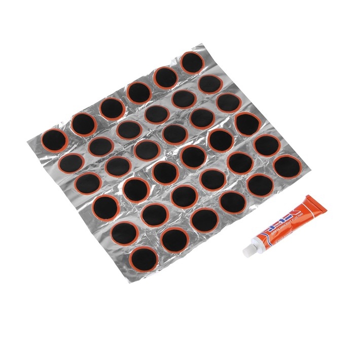 Набор для ремонта камер TOPAUTO, резиновые латки d 28 мм круглые 36 шт, клей
