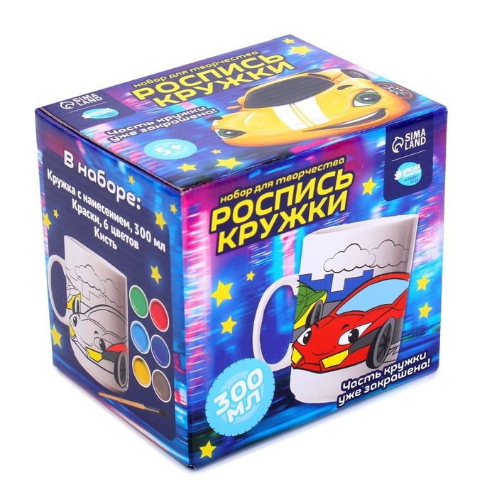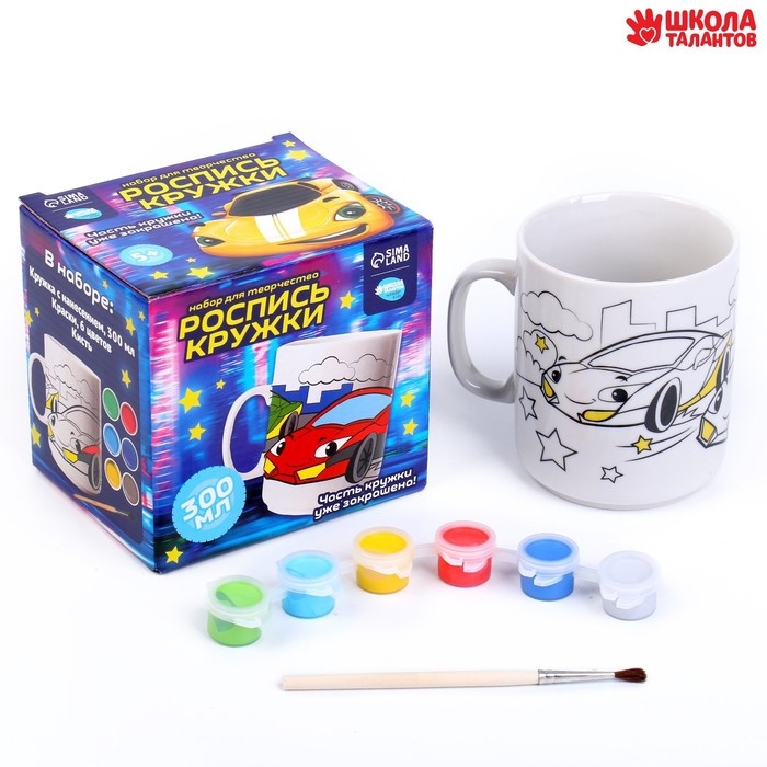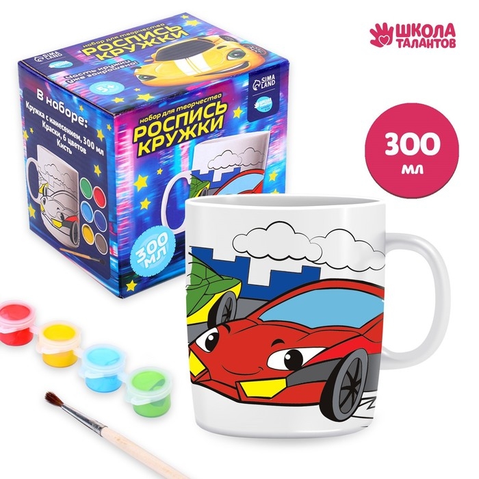 Набор для росписи керамической кружки «Спортивные машинки», 300 мл