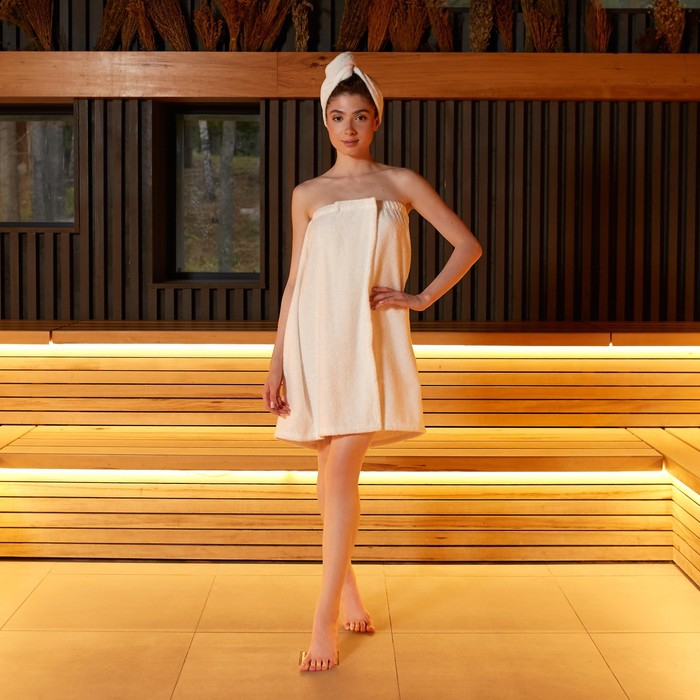Набор для сауны Экономь и Я: полотенце-парео 68*150см+чалма, белый,100%хл, 320 г/м2