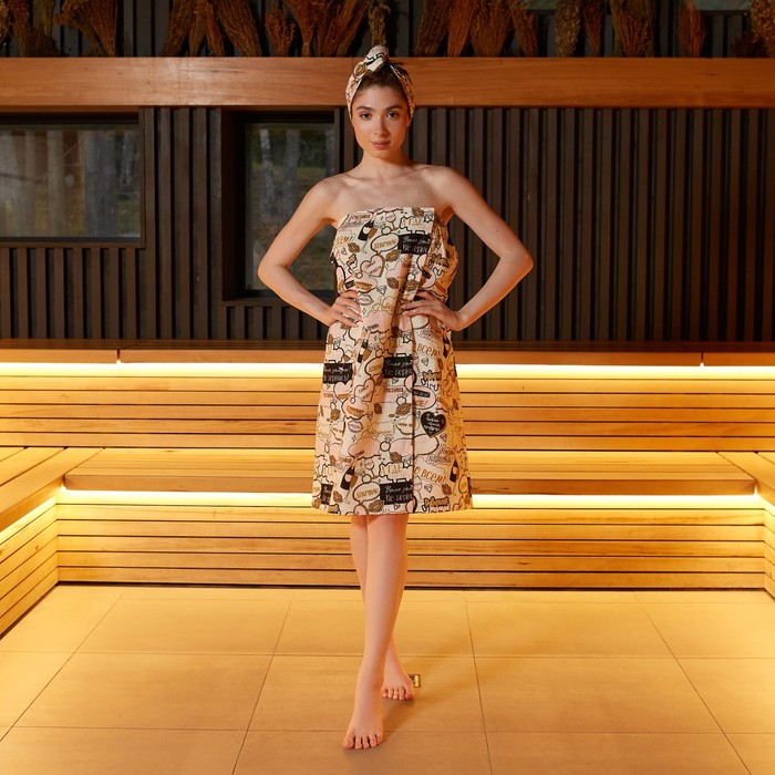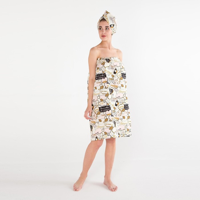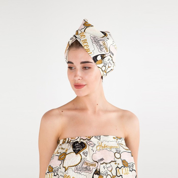 Набор для сауны Этель "Девичник" парео 80*144 см + чалма, вафля 200г/м2, 100% хл
