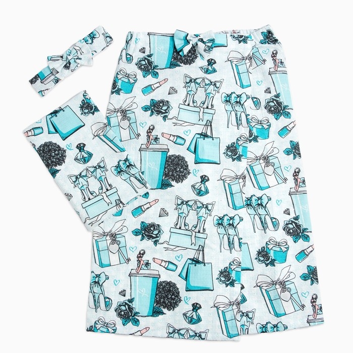 Набор для сауны Этель "Mint mood" парео с бантиком+полотенце 80х150 см+повязка,100% хл