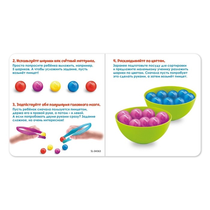 - Помогите крохе научиться держать пинцет в ручках и цеплять им мелкие шарики.