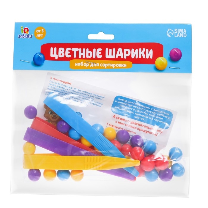 Набор для сортировки «Цветные шарики» рекомендован детям старше 3 лет. Играть следует под присмотром родителей.