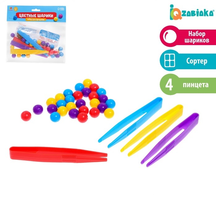 Набор для сортировки с пинцетами и шариками надолго увлечёт ребёнка, поможет в развитии моторики, координации, внимания и в изучении цветов. С этим комплектом малыш быстро запомнит цвета и научится считать.