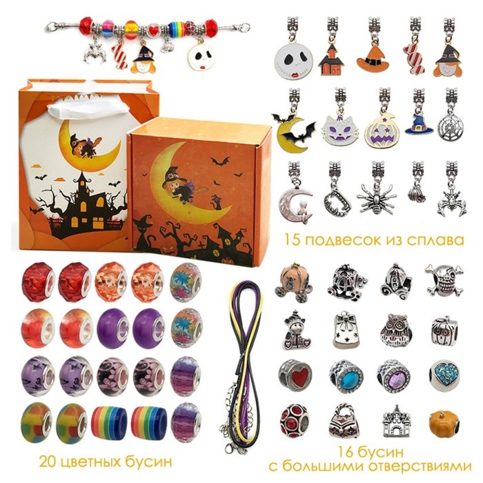 Набор для создания браслетов «Подарок для девочек», хэллоуин, 57 предметов, цветной