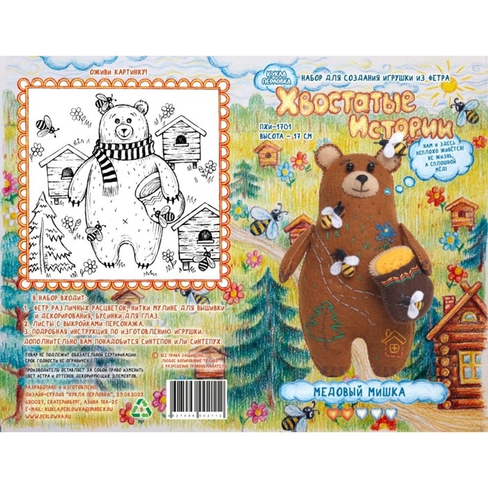 Набор для создания игрушки из фетра+ раскраска»Медовый Мишка»