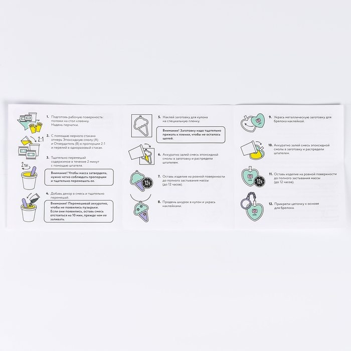 Эпоксидная смола — это популярный материал для изготовления украшений, который не имеет запаха и застывает за 12 часов. В набор входит всё необходимое для создания стильных аксессуаров, дополнительные инструменты не потребуются. Набор подойдёт для проведения увлекательного и полезного досуга вместе с ребёнком, а украшение, которое получится, станет самым любимым.